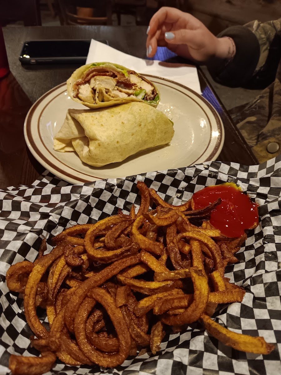 Great food and atmosphere. Small town bar & grill in Frontenac which has a family atmosphere. Great staff and food. The wings are amazing. Boneless and traditional. I have food allergies so I ordered the traditional bone in wings which were amazing! They are not breaded. Wings are not an option below but you must try their wings. Boneless and bone in. My daughter loved the boneless. My daughter said the Chicken Bacon Ranch Wrap was delicious also. And the curly fries...can't live without them!